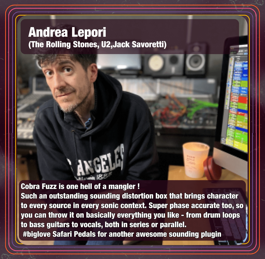 Cobra Fuzz is ready to slither into your audio setup, delivering everything from **subtle fuzz warmth** to an **aggressive saturation attack**. Imagine the **hiss of a cobra** wrapping around your riffs, adding a fierce, organic bite to your sound.