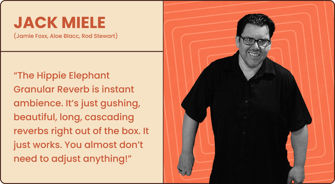 Hippie Elephant is our dreamy, warbly granular reverb a swirling cloud machine that freezes, shimmers, and melts your audio into psychedelic textures. Shape the grain size with TIME, bend the space with PITCH, darken/brighten with TONE, and ride a built-in TREMOLO for hypnotic movement. It’s instant vintage-sci-fi ambience for guitars, vocals, synths, and beyond.