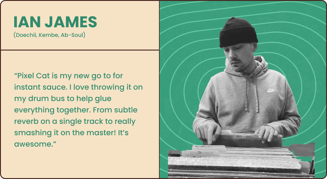Pixel Cat is our playful lo-fi bitcrusher with springy space. It chews audio into pixelated grit, then washes it through a lively spring reverb for retro crunch with dreamy depth. Perfect on drums, synths, guitars, vocals, and anything that needs lo-fi magic.